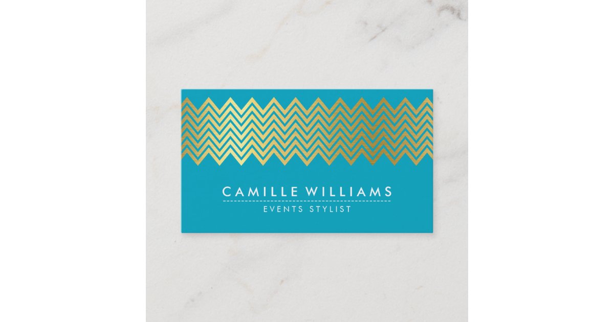 Modern Chevron Pattern Gold Foil Turquoise Blue Business Card Zazzle