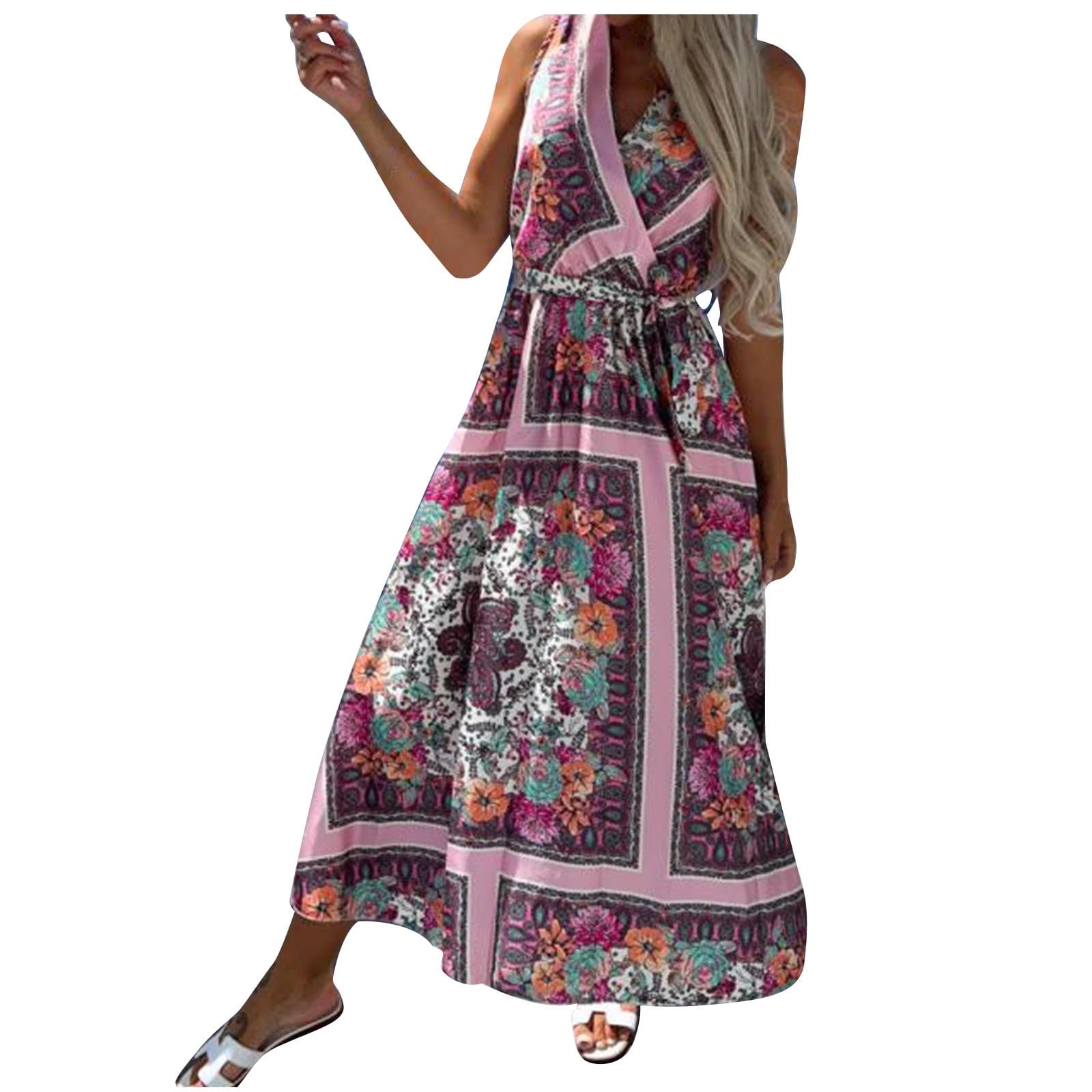 Spring Dresses For Women 2023 Clearance Sleeveless V Neck Dress Pattern Long Formal Dress For Women Home Maxi Dress Pink M Walmart Com